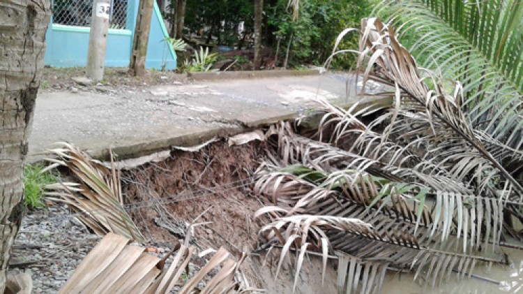 Thới Thuận (gần mặt đập) bị sạt lở, nứt nhiều chỗ. Đất của một số hộ dân bị sụp