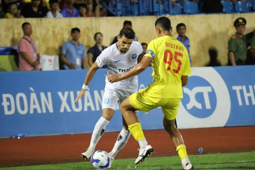 Phút 64, sau khi đi bóng vượt qua Đinh Viết Tú, Văn Vĩ chuyền bóng vào trong. Bóng đến chân của Văn Công trong tư thế vô cùng trống trải, cầu thủ này không bỏ lỡ cơ hội nâng tỉ số lên 2-0 cho đội chủ nhà.