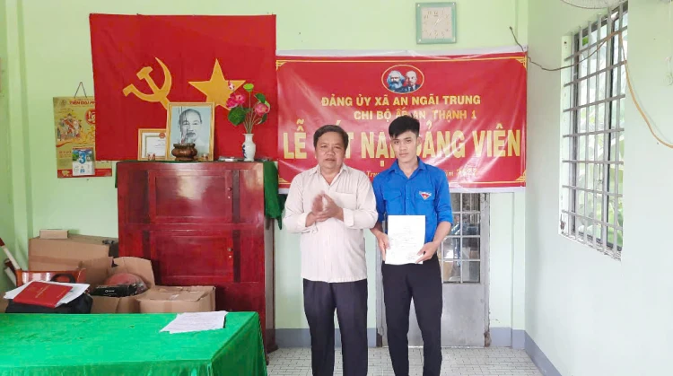 Lễ kết nạp đảng viên mới ở Chi bộ ấp An Thạnh 1, xã An Ngãi Trung. Ảnh: Trần Xiện