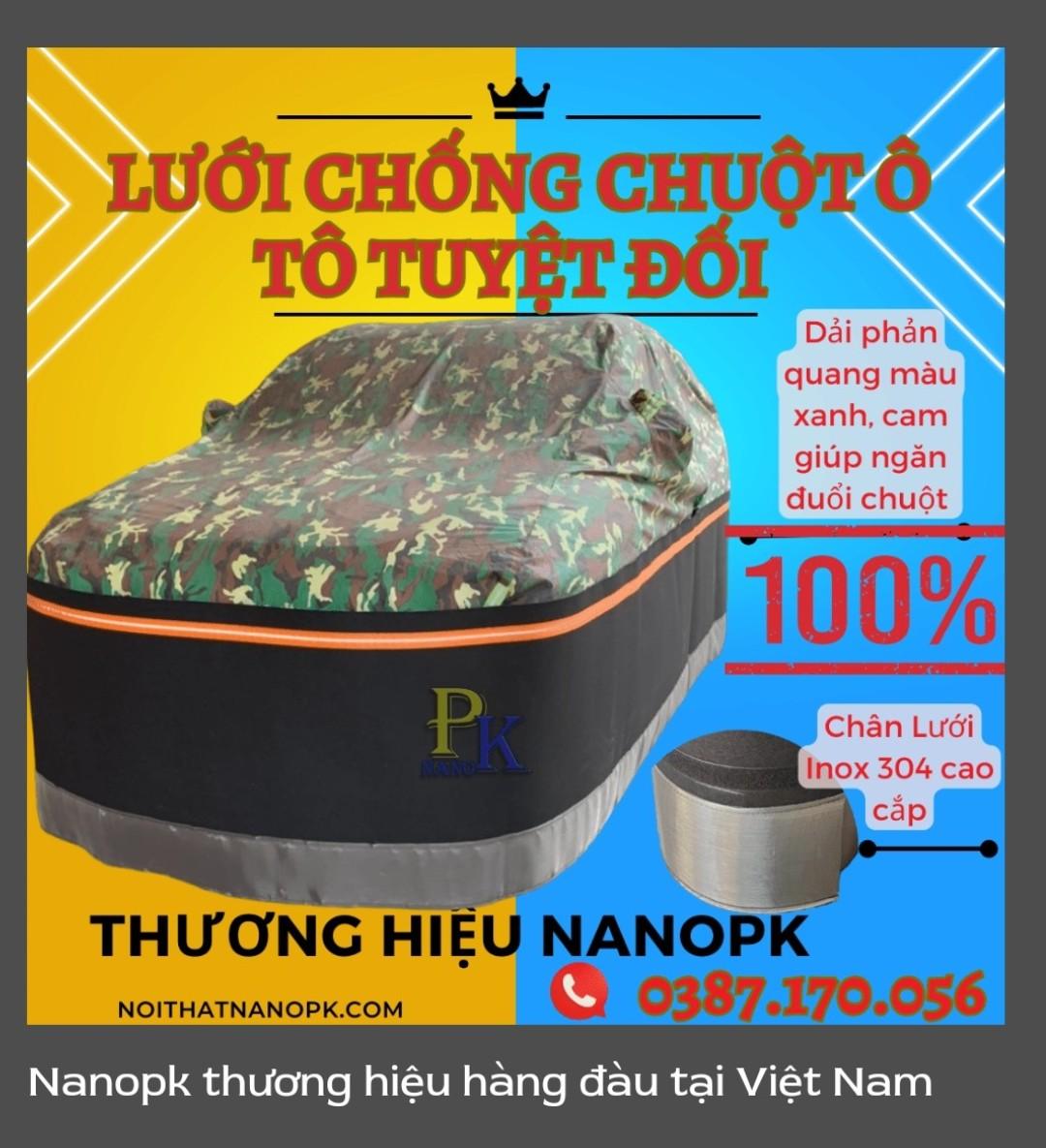 Phần còn lại của chiều cao là nỉ cao cấp không bị lão hóa, được phủ lớp nỉ chống xước sơn xe bên ngoài. Điều này đảm bảo tính thẩm mỹ và độ bền của sản phẩm trong thời gian dài. Nanopk cam kết rằng sản phẩm này hoàn toàn chống chuột 100%, một lần mua sử dụng trọn đời xe, điều này không chỉ tiết kiệm chi phí mà còn mang lại sự an tâm tuyệt đối cho chủ xe.