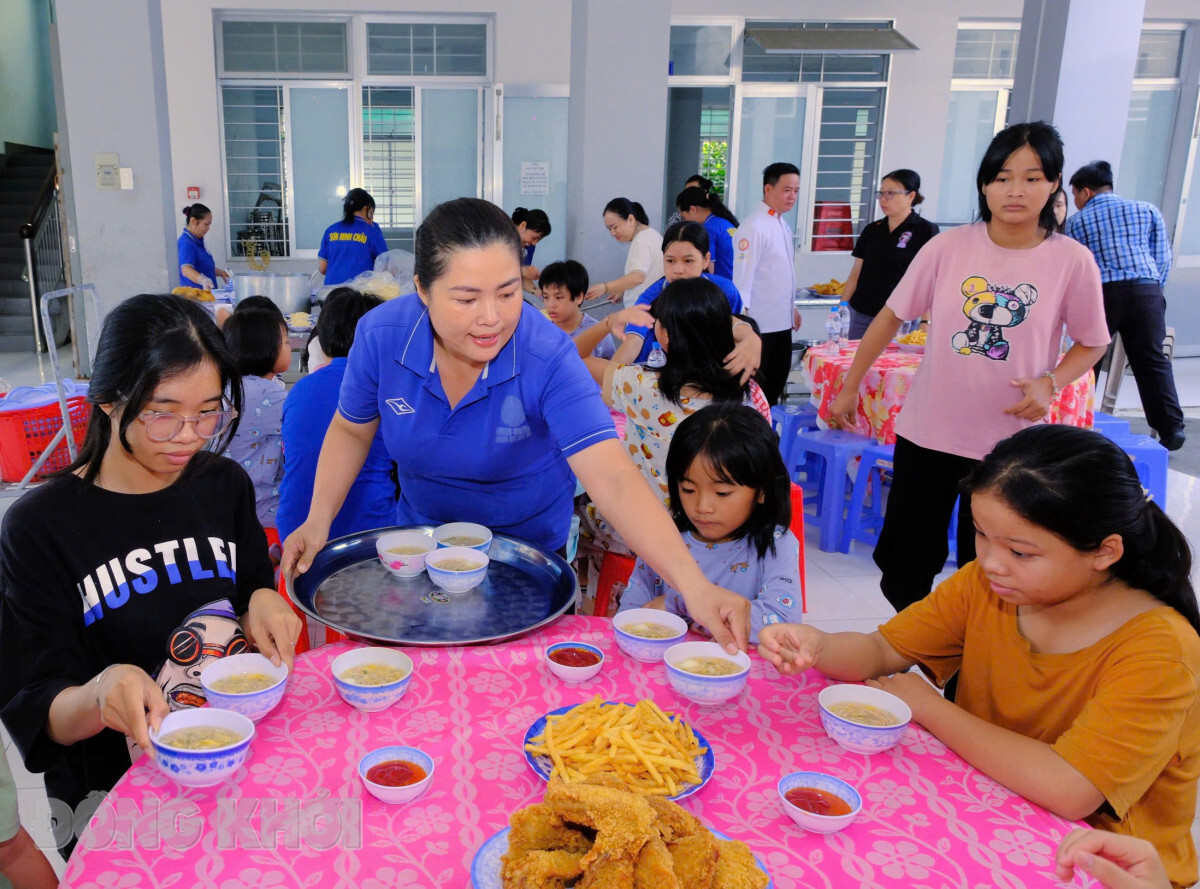 Các thành viên Hiệp hội Ẩm thực xứ Dừa phục vụ suất ăn dinh dưỡng cho các em thiếu nhi