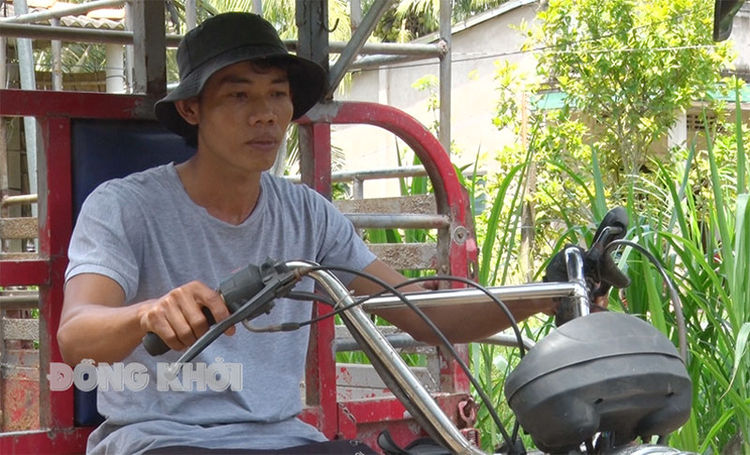 Anh Phạm Duy Thanh bên phương tiện mưu sinh của gia đình. Ảnh: Minh Tân