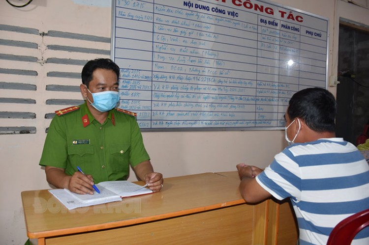 Đại úy Trương Minh Châu giáo dục đối tượng tham gia tệ nạn xã hội tại địa phương.