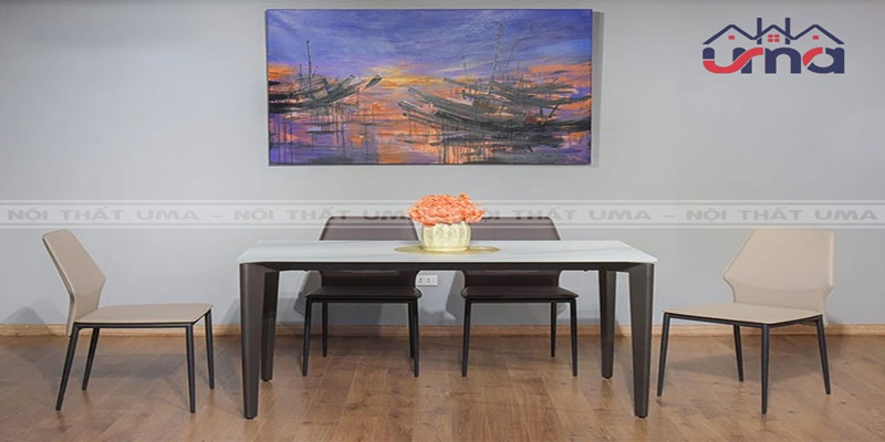 Bàn ghế ăn sang trọng: UMA mang đến cho bạn nhiều kiểu dáng bàn ghế ăn đa dạng như: bàn ăn chân gỗ mặt đá, bàn ăn châm kim loại cao cấp, bàn ăn ghế bọc da hiện đại, bàn ăn gỗ,....