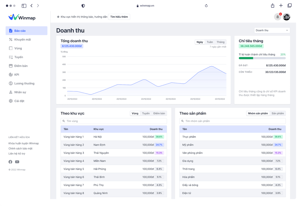 Báo cáo số liệu kinh doanh chính xác: Báo cáo đầy đủ theo thời gian thực với bảng số liệu và biểu đồ so sánh trực quan.