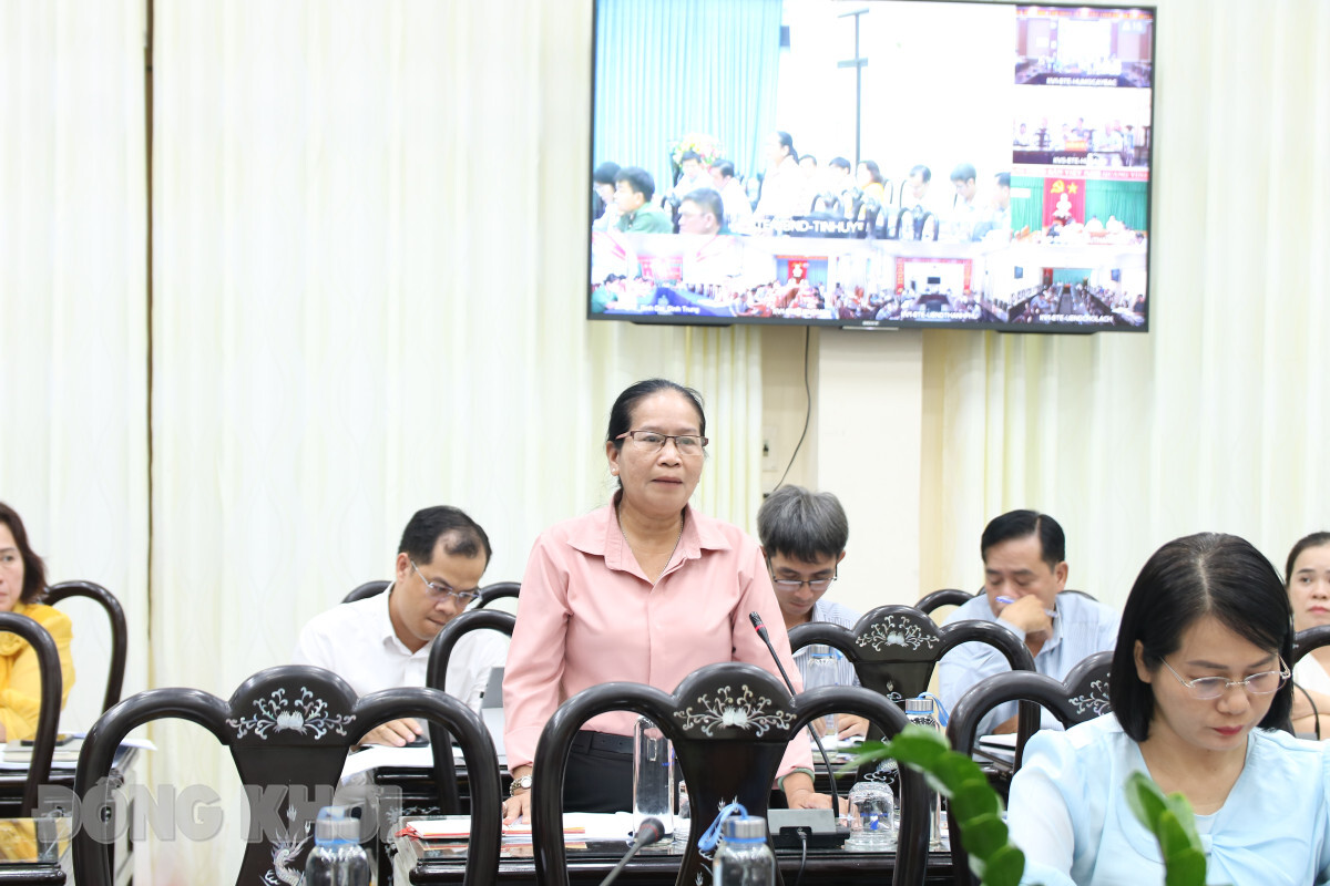 Sau khi nghe đại diện các sở, ngành, lãnh đạo huyện và một số địa phương báo cáo, nêu ý kiến, Chủ tịch Ủy ban MTTQ Việt Nam tỉnh Nguyễn Thị Hồng Nhung - Phó Trưởng Ban Chỉ đạo cho rằng: Cần bổ sung về tình hình dư luận trong nhân dân về sự đồng thuận, công tác tham gia hỗ trợ từ cộng đồng dân cư và các nguồn lực khác, những đóng góp dù nhỏ, qua đó thể hiện sức mạnh đại đoàn kết. Tình hình nguồn vốn bố trí, đến nay Ủy ban MTTQ Việt Nam tỉnh đã tiếp nhận vốn từ nhiều nguồn, đảm bảo vốn đủ cho các hộ có nhu cầu của giai đoạn 2, do đó, nguồn vốn là đảm bảo cho cả hai giai đoạn. Đối với việc còn tồn đọng, Ủy ban MTTQ Việt Nam tỉnh phối hợp Sở Tài chính đã có văn bản đề nghị các huyện, thành phố báo cáo đề xuất hỗ trợ, rà soát để có kiến nghị về kinh phí chuyển mục đích sử dụng đất cho các đối tượng hộ nghèo, hộ cận nghèo (hạn chót 6-5-2025), nhưng hiện Sở Tài chính chỉ mới nhận báo cáo của UBND huyện Mỏ Cày Nam và huyện Châu Thành.