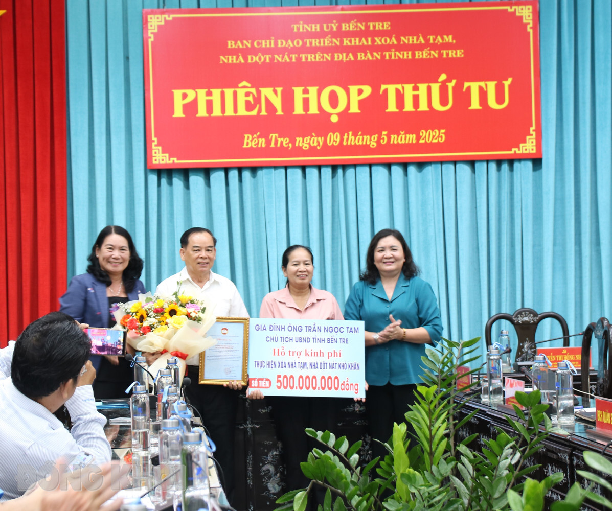 Chủ trì phiên họp gồm các đồng chí: Bí thư Tỉnh ủy - Chủ tịch HĐND tỉnh Hồ Thị Hoàng Yến - Trưởng ban Chỉ đạo triển khai xóa nhà tạm, nhà dột nát tỉnh Bến Tre; Chủ tịch UBND tỉnh Trần Ngọc Tam - Phó trưởng Ban Chỉ đạo; Chủ tịch Ủy ban MTTQ Việt Nam tỉnh Nguyễn Thị Hồng Nhung - Phó trưởng ban Chỉ đạo.