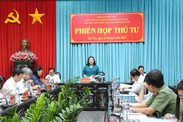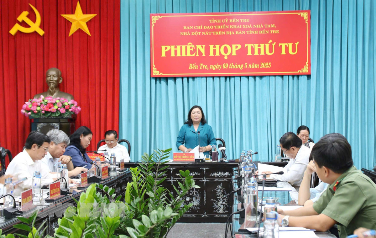 Phát biểu kết luận tại phiên họp thứ tư, Bí thư Tỉnh ủy - Chủ tịch HĐND tỉnh Hồ Thị Hoàng Yến cho rằng: Về tình hình thực hiện, đến thời điểm này, mục tiêu giai đoạn 1 (hoàn thành 1.031 căn nhà) chỉ mới đạt khoảng 50%. Một số địa phương chưa đạt tiến độ đề ra. Các huyện, thành phố và xã cần tập trung triển khai quyết liệt, hoàn thành 100% Chương trình xóa nhà tạm, nhà dột nát tỉnh Bến Tre trước 30-6-2025.