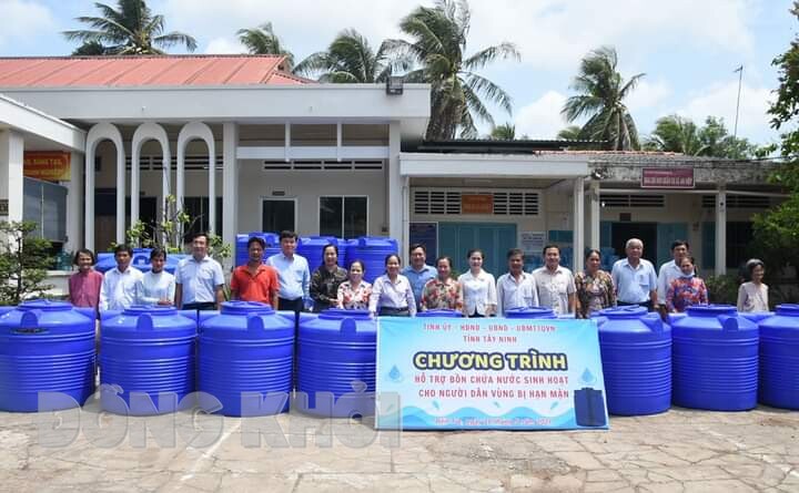 Mùa khô năm 2019-2020, 2023-2024, nước mặn lên sớm, xâm nhập sâu, kéo dài làm cho đời sống người dân gặp nhiều khó khăn do thiếu nước sinh hoạt, chăn nuôi và sản xuất, với sự vào cuộc của cả hệ thống chính trị mà nòng cốt là MTTQ Việt Nam các cấp và các tổ chức thành viên của Mặt trận đã tuyên truyền, vận động, kêu gọi các tổ chức, cá nhân trong và ngoài tỉnh cùng chung tay, góp sức giúp cho người dân vùng hạn, mặn vượt qua khó khăn, ổn định cuộc sống. Kết quả, MTTQ Việt Nam các cấp và các tổ chức thành viên của Mặt trận đã tiếp nhận sự ủng hộ của trên 3.000 tổ chức, cá nhân trong và ngoài tỉnh đến hỗ trợ nguồn lưc như: dụng cụ chứa nước, nước uống, nước sinh hoạt… Tổng kinh phí quy ra thành tiền trên 230 tỷ đồng, góp phần ổn định cuộc sống cho người dân trong mùa hạn, mặn.