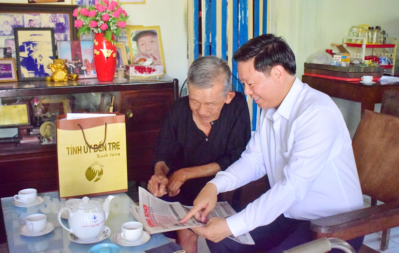 Đoàn đã đến thăm đồng chí Nguyễn Văn Chẩn (Ba Cang), nguyên Phó tham mưu trưởng, Bộ Tham mưu Quân khu 9 (Phường 8, TP. Bến Tre); đồng chí Nguyễn Văn Bé (Sáu Bé), nguyên Chủ nhiệm Chính trị Tỉnh đội Bến Tre (phường An Hội, TP. Bến Tre) và đồng chí Nguyễn Tấn Phát (Tám Thư), nguyên Giám đốc Sở Thủy sản Bến Tre (phường Phú Khương, TP. Bến Tre).