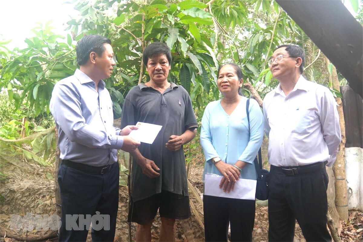 Phó bí thư Thường trực Tỉnh ủy Trần Thanh Lâm cùng đoàn công tác của tỉnh thăm hộ ông Huỳnh Văn Tám (xã Phú Đức).