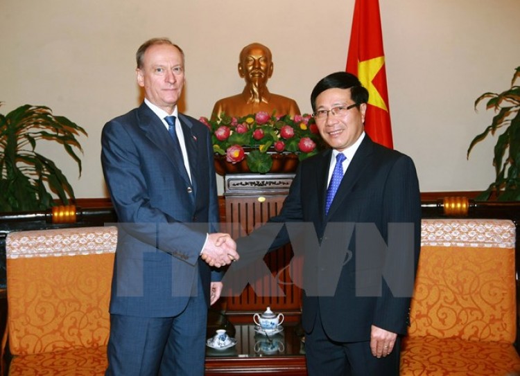 Ủy viên Bộ Chính trị, Phó Thủ tướng, Bộ Trưởng Ngoại giao Phạm Bình Minh tiếp Đại tướng Patrushev Nikolay, Thư ký Hội đồng An ninh Liên bang Nga. (Ảnh: Doãn Tấn/TTXVN) |