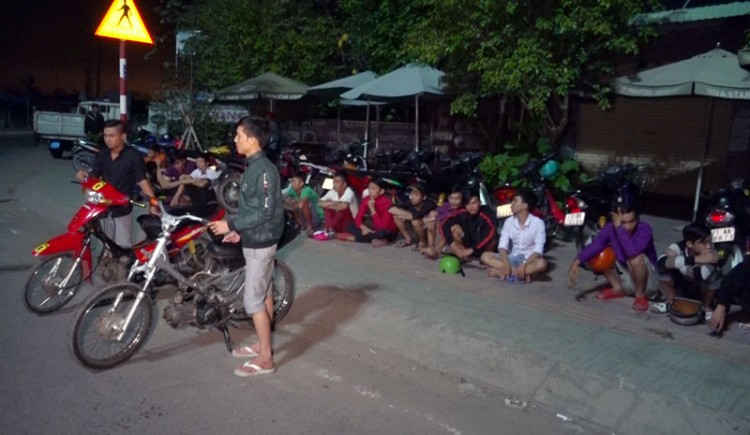 Các đối tượng tụ tập đua xe trái phép bị bắt giữ. Ảnh: B. Nhân