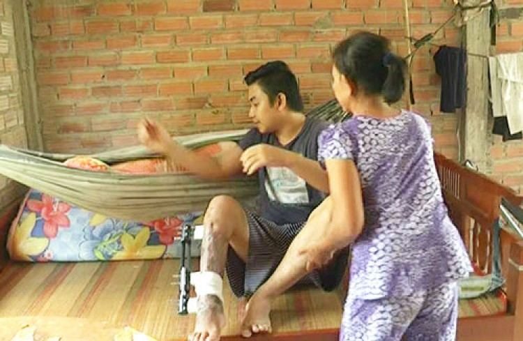 nát phần ống chân phải. Qua 3 năm chữa trị tại Bệnh viện 115 (TP. Hồ Chí Minh),