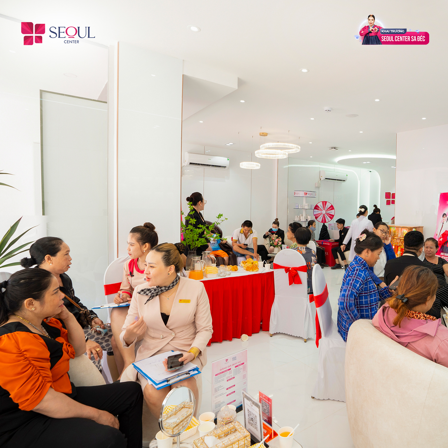 Buổi lễ khai trương được tổ chức nguy nga tráng lệ, thu hút sự quan tâm và tham gia của hơn 200 khách hàng ngồi “full” các hàng ghế chờ, góp phần làm không khí buổi lễ khai trương thêm rộn ràng, náo nhiệt và thành công vượt ngoài mong đợi. Đến tham dự khai trương Seoul Center Chi nhánh Thẩm mỹ viện Sa Đéc Đồng Tháp, quý khách hàng được mãn nhãn với các tiết mục nghệ thuật bùng nổ sự kiện như: múa lân, nhảy hiện đại, cắt băng khai trương,...