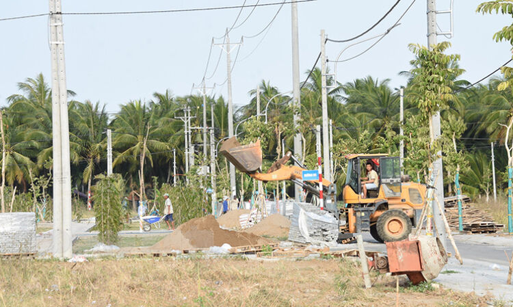 Thi công hạ tầng Khu tái định cư Khu công nghiệp Phú Thuận. Ảnh: Cẩm Trúc