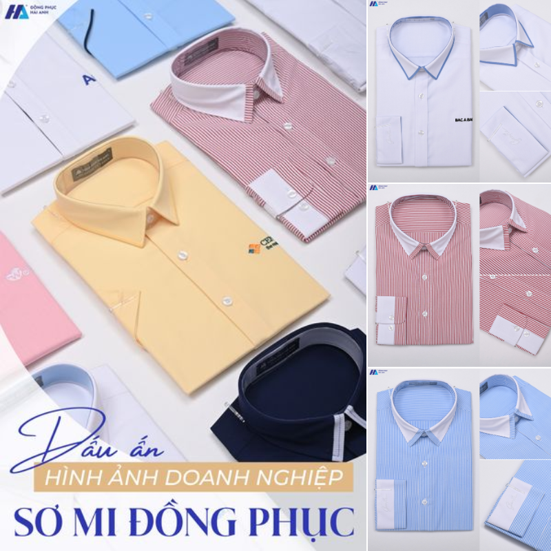 BST áo sơ mi đồng phục của Hải Anh xuất hiện cùng bảng màu thời thượng, sang trọng như trắng, xanh dương, kẻ sọc tím, kẻ sọc đỏ,... Hải Anh luôn đề cao tính tối giản trong mỗi thiết kế sơ mi đồng phục, nhưng đem đến cho người mặc vẻ đẹp tao nhã, tinh tế, chinh phục được cả những vị khách hàng khó tính nhất.