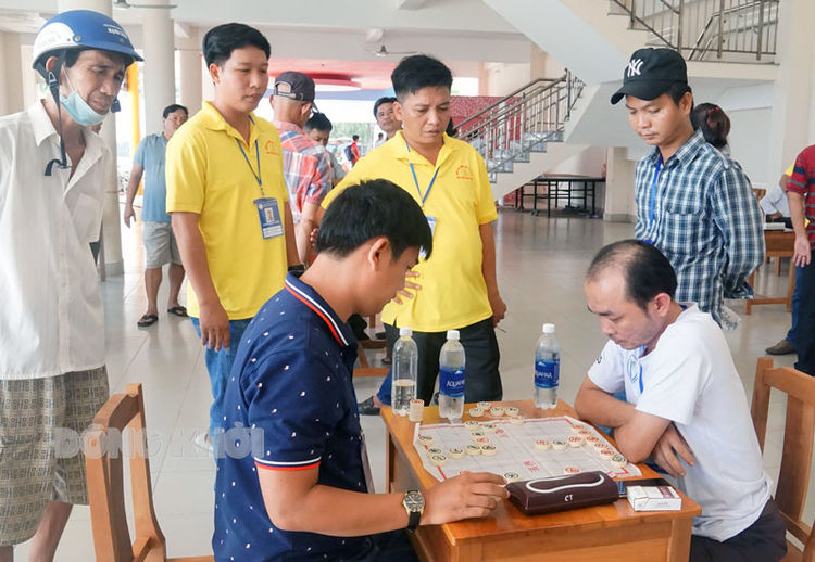 Các vận động viên thi đấu chung kết môn cờ tướng.