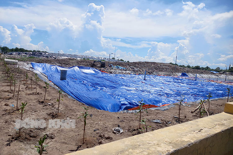 Rác thải tại bãi rác An Hiệp được xử lý phun thuốc và phủ bạt. Ảnh: PV