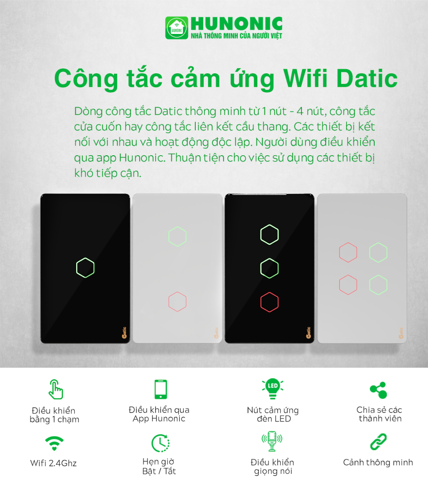 Công tắc cảm ứng Hunonic nổi bật với nhiều tính năng như:
