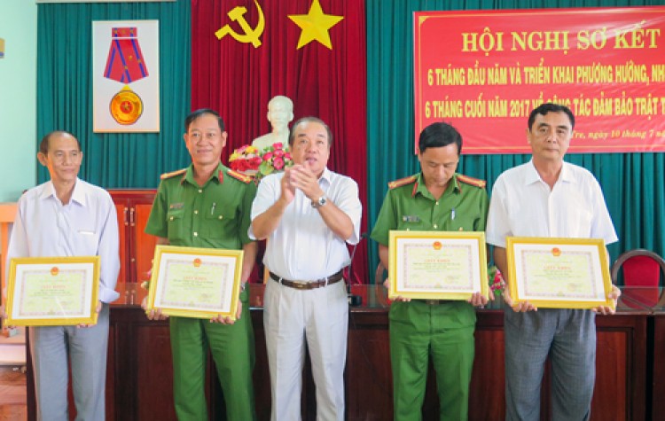 | Ông Lê Văn Hoàng - Giám đốc Sở Giao thông vận tải, Phó trưởng Ban ATTG tỉnh trao giấy khen cho các tập thể. |