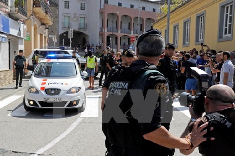 Cảnh sát Tây Ban Nha bắt giữ các nghi phạm liên quan tới các vụ tấn công ở Catalonia. (Ảnh: EPA/TTXVN) |