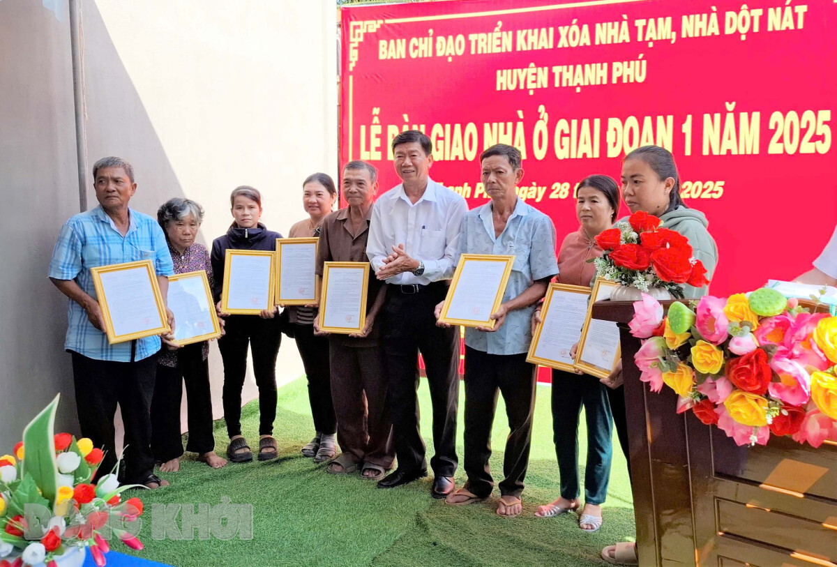 Phát biểu tại buổi lễ bàn giao nhà, Phó chủ tịch UBND huyện Trương Thanh Hải đề nghị, Ban Chỉ đạo xóa nhà tạm, nhà dột nát thị trấn Thạnh phú tiếp tục tuyên truyền sâu rộng trong nhân dân về ý nghĩa nhân văn của Chương trình chung tay xóa nhà tạm, nhà dột nát; tổ chức khởi công, xây dựng và bàn giao số nhà còn lại trước ngày 30-6-2025. Đồng thời, tiếp tục tạo điều kiện giúp đỡ các hộ khó khăn vươn lên phát triển kinh tế và làm giàu chính đáng. Lãnh đạo huyện mong muốn các hộ dân được nhận nhà, cần phát huy hơn nữa ý chí tự lực tự cường, chăm lo lao động, sản xuất, vươn lên trong cuộc sống, từng bước thoát nghèo bền vững…