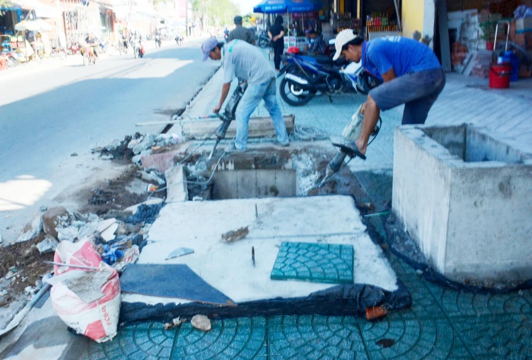 Thi công chỉnh trang đô thị thị trấn Phước Mỹ Trung.
