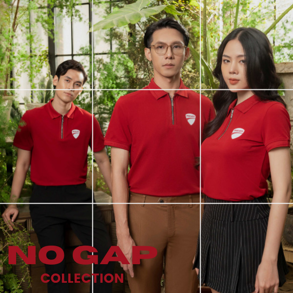 Bộ sưu tập đồng phục áo polo mang hơi hướng mới lạ, phá cách với chi tiết khóa kéo độc đáo thay vì hàng cúc cài cổ thông thường. No Gap sử dụng các gam màu tối giản, sang trọng, truyền tải thông điệp ý nghĩa về việc xóa tan khoảng cách giữa thời trang và đồng phục.
