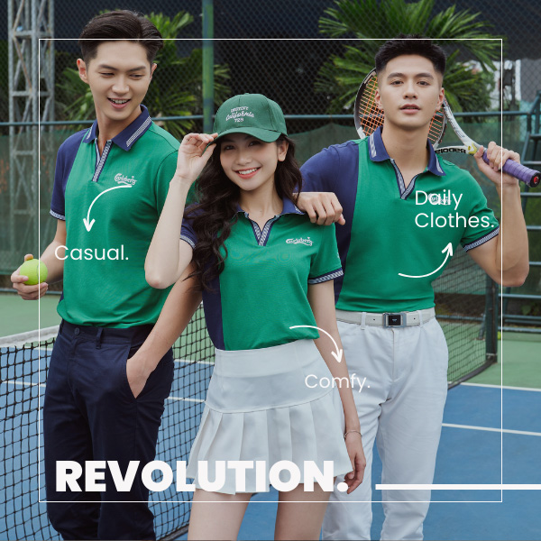 Revolution Collection là bộ sưu tập ấn tượng, làm mưa làm gió trên thị trường đồng phục suốt thời gian dài sau khi ra mắt. Điểm đặc biệt của BST này là phần thiết kế cổ áo polo không cúc chữ V phá cách, form áo Classic Fit cách điệu giúp che khuyết điểm hiệu quả. Kết hợp cách pha phối màu mới lạ và khác biệt đem đến diện mạo trẻ trung, năng động, phù hợp mọi độ tuổi, giới tính.