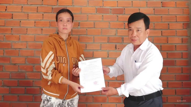 UBND xã Phước Hiệp trao quyết định bàn giao nhà cho chị Hạnh. Ảnh: Thanh Tuyền.