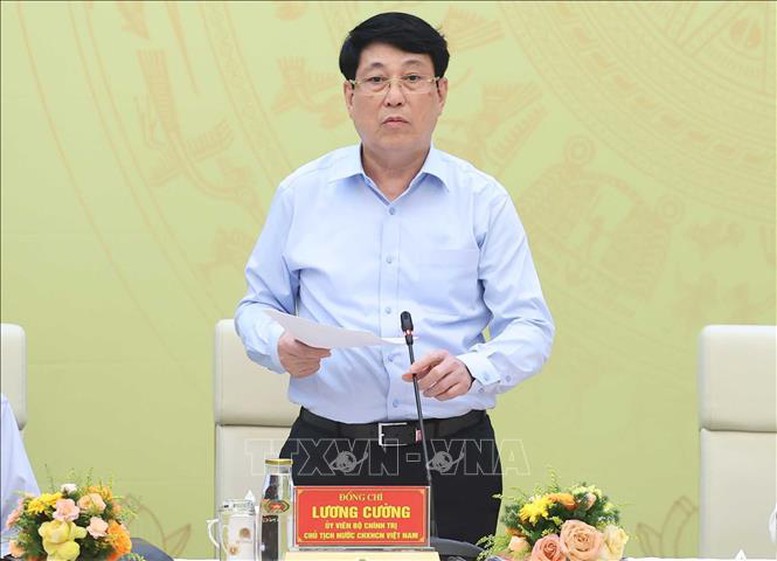Chủ tịch nước Lương Cường phát biểu tại hội nghị - Ảnh: TTXVN
