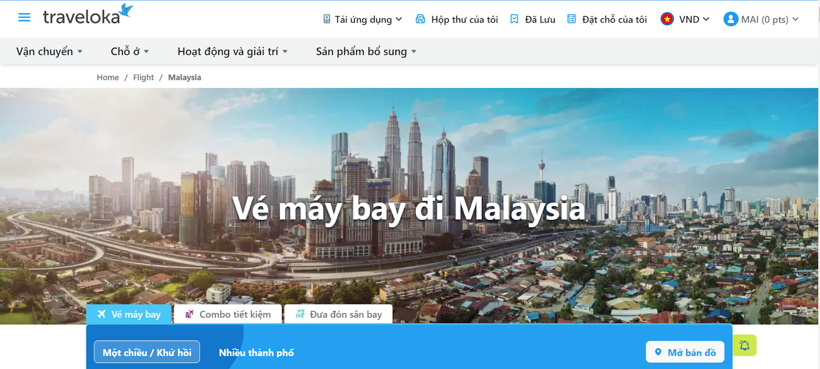 Đặt vé máy bay đi Malaysia dễ dàng với Traveloka