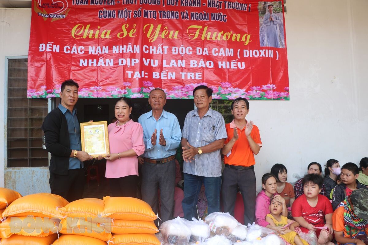 Chủ tịch Hội Nạn nhân chất độc da cam/dioxin - Bảo vệ quyền trẻ em tỉnh Nguyễn Thị Thủy trao giấy ghi nhận tấm lòng vàng cho ông Tuấn Nguyễn.