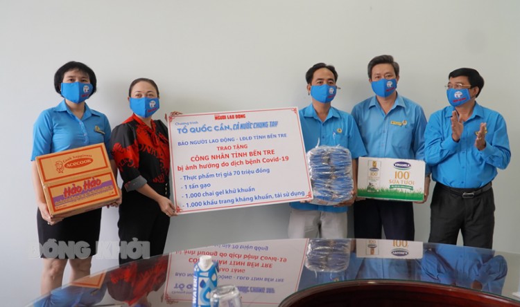 Ban tổ chức trao 1 tấn gạo cho Phòng Giáo dục và Đào tạo TP. Bến Tre hỗ trợ giáo viên các trường tư thục trên địa bàn TP. Bến Tre; trao 1 ngàn khẩu trang, 1 ngàn chai nước khử khuẩn cho công nhân làm vệ sinh thuộc Công ty cổ phần Công trình đô thị Bến Tre; nhu yếu phẩm gồm: sữa, mì tôm, xúc xích với trị giá 70 triệu đồng trao cho công nhân lao động thật sự khó khăn ở các khu công nghiệp trong tỉnh.