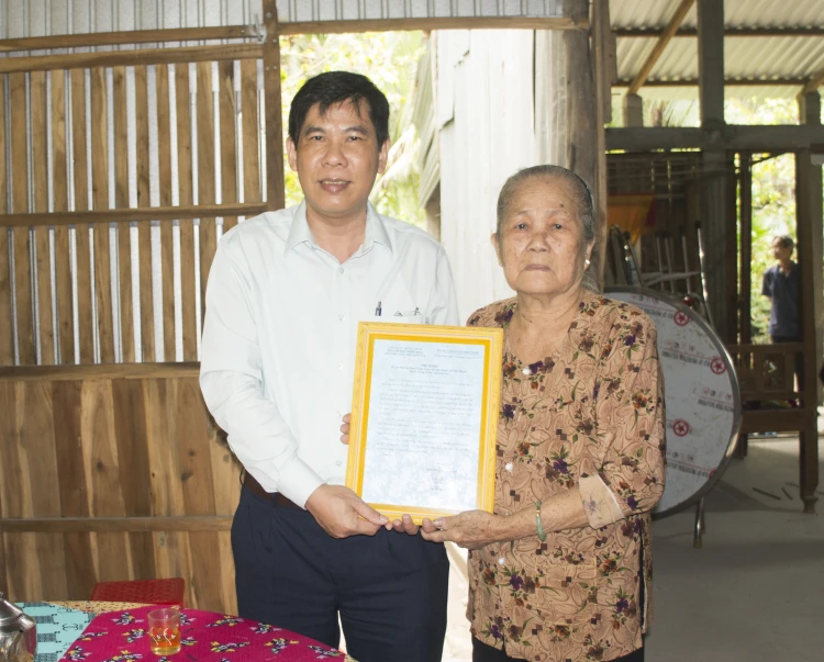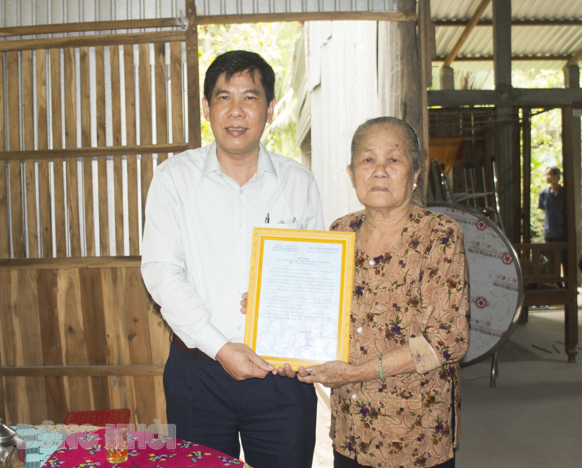 Thay mặt Ban Chỉ đạo xóa nhà tạm, nhà dột nát huyện, Bí thư Huyện ủy Nguyễn Thái Bình trao thư khen, trân trọng ghi nhận và biểu dương tinh thần tự lực vươn lên trong cuộc sống của gia đình bà Nguyễn Thị Tước. Đây là tấm gương điển hình cần được nhân rộng tại các xã, thị trấn trên địa bàn huyện Giồng Trôm.
