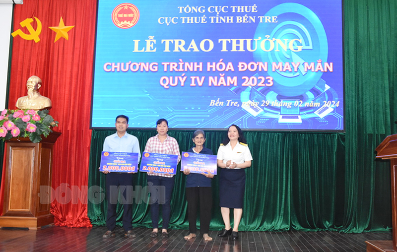 Cục Thuế tỉnh trao giải chương trình hóa đơn may mắn do ngành thuế tổ chức.