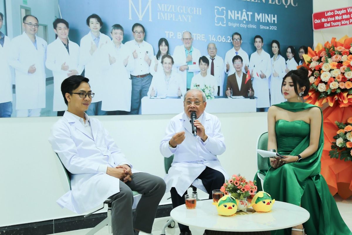 Trong khuôn khổ sự kiện khai trương, khách mời cũng được trò chuyện với các chuyên gia hàng đầu trong lĩnh vực răng hàm mặt là bác sĩ Nguyễn Hữu Thông từng đảm nhận vị trí Trưởng Trung tâm Nha khoa Vạn Hạnh và bác sĩ Nguyễn Hoài Nam, Giám đốc chuyên môn Trung tâm Nha khoa Nhật Minh chi nhánh Bến Tre. Các bác sĩ đã giải đáp những thắc mắc về niềng răng, làm sứ thẩm mỹ và trồng răng implant cho người cao tuổi…