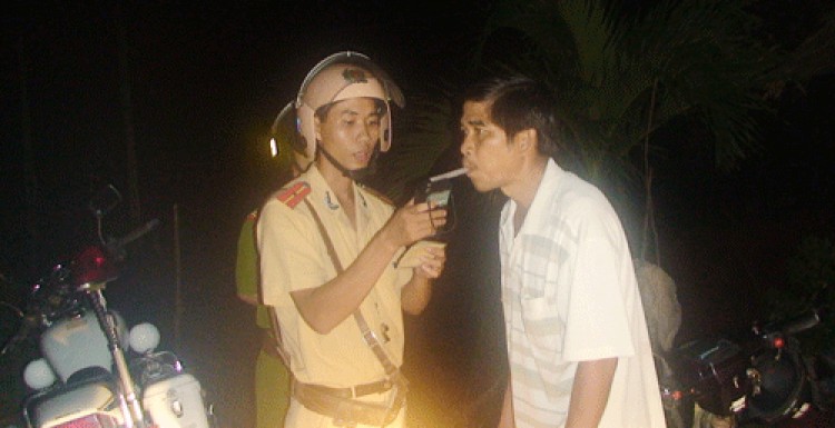 | Lực lượng CSGT đang đo nồng độ cồn của người vi phạm. |