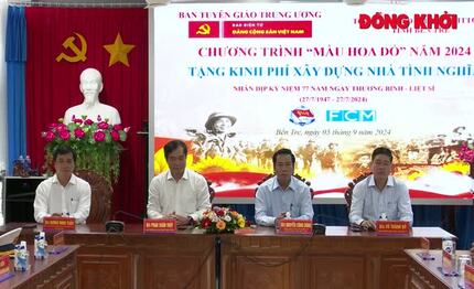 Sáng 5-9-2024, tại Huyện ủy Mỏ Cày Nam, Báo điện tử Đảng cộng sản Việt Nam phối hợp các đơn vị tổ chức Chương trình “Màu hoa đỏ” năm 2024, trao tặng kinh phí xây dựng nhà tình nghĩa, tình thương nhân dịp kỷ niệm 77 năm Ngày Thương binh - Liệt sĩ (27-7-1947 - 27-7-2024).