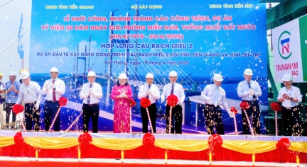 Ngày 19-4-2025, trên cầu Rạch Miễu 2, thuộc địa phận xã Bình Đức, huyện Châu Thành, tỉnh Tiền Giang, Ban Quản lý dự án (QLDA) Mỹ Thuận tổ chức lễ hợp long cầu Rạch Miễu 2 nối tỉnh Tiền Giang và Bến Tre.