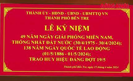 TP. Bến Tre họp mặt kỷ niệm 49 năm Ngày giải phóng miền Nam, thống nhất đất nước và trao Huy hiệu Đảng đợt 19-5