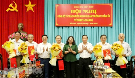 Chiều 27-5-2025, Thường trực Tỉnh ủy tổ chức hội nghị công bố và trao quyết định về công tác cán bộ. Bí thư Tỉnh ủy - Chủ tịch HĐND tỉnh Hồ Thị Hoàng Yến, Phó bí thư Thường trực Tỉnh ủy Trần Thanh Lâm, Chủ tịch UBND tỉnh Trần Ngọc Tam chủ trì hội nghị.