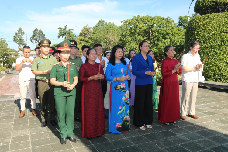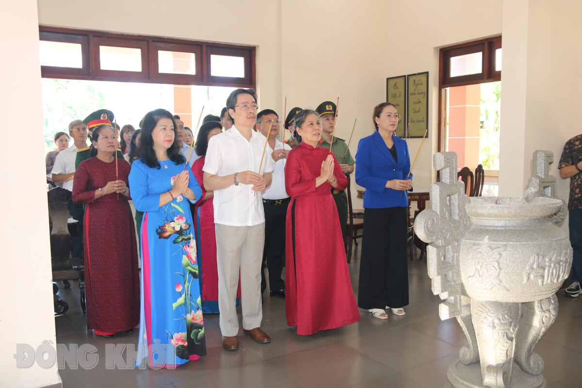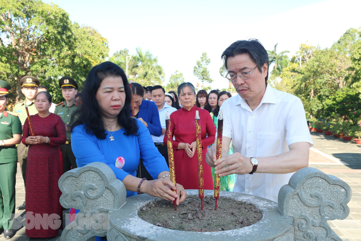 Các đại biểu đã viếng Đền thờ Chủ tịch Hồ Chí Minh, dâng hoa, dâng hương tại Đài tưởng niệm liệt sĩ. Hoạt động này mang ý nghĩa tri ân đồng bào và các chiến sĩ miền Nam nhân dịp kỷ niệm 50 năm Ngày Giải phóng miền Nam, thống nhất đất nước, 65 năm phong trào Đồng khởi, thể hiện truyền thống “uống nước nhớ nguồn” của dân tộc; chào mừng kỷ niệm 135 năm ngày sinh Chủ tịch Hồ Chí Minh.