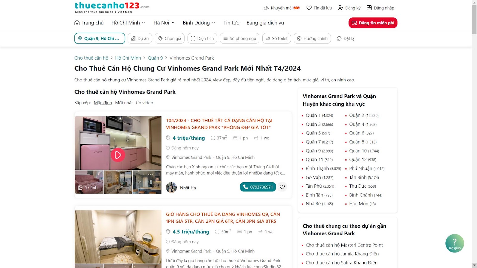 Tìm thuê căn hộ Vinhomes Grand Park giá rẻ tại Thuecanho123.com