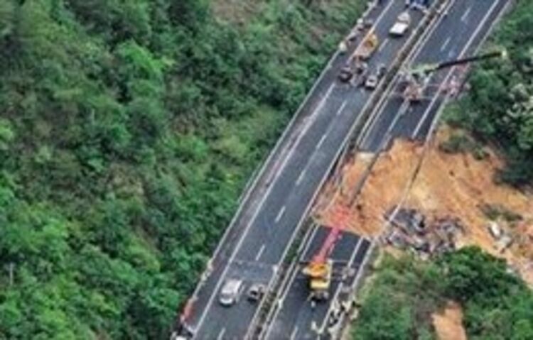 Hiện trường vụ sập một phần đường cao tốc ở tỉnh Quảng Đông, miền Nam Trung Quốc ngày 1-5-2024. Ảnh: THX/TTXVN