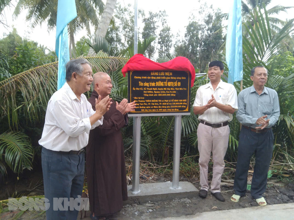 BDK.VN - Hội Khoa học kỹ thuật (KHKT) cầu đường Bến Tre phối hợp với xã UBND Thạnh Ngãi tổ chức nghiệm thu khánh thành đưa vào sử dụng 2 con lộ nông thôn . Đến dự có Anh hùng Lao động Trịnh Văn Y - nguyên Phó chủ tịch UBND tỉnh , Chủ tịch danh dự hội KHKT cầu đường tỉnh; nhà tài trợ có Hòa thượng Thích Huằng Tri chùa Vạn Đức TP. Hồ Chí Minh.